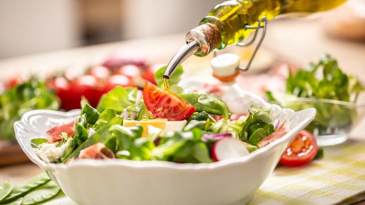 橄榄油不耐高温(烟点190℃),不允洽用于煎炒,常被用作蔬菜沙拉拌料,为凉菜增添仪态。